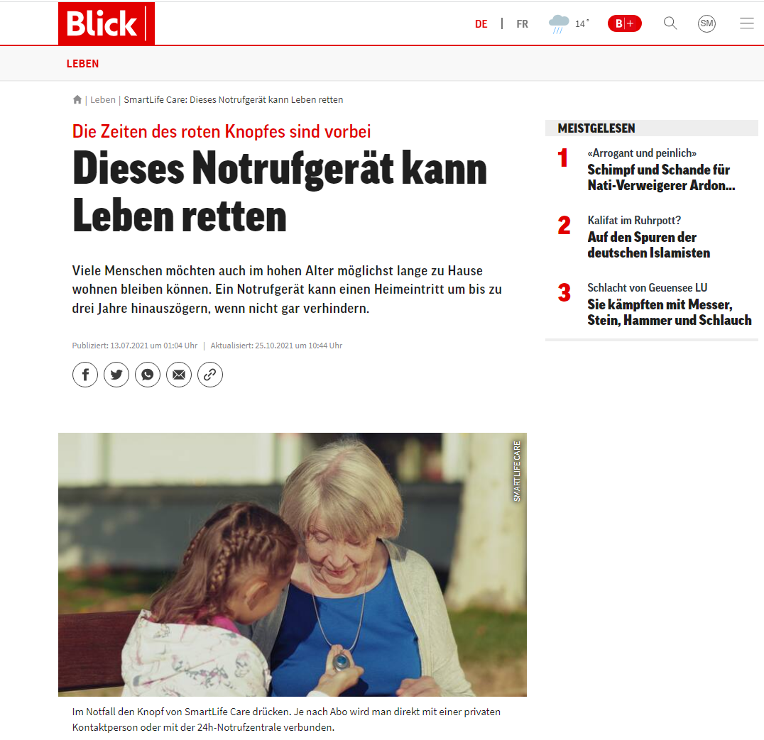 Blick.ch - Die Zeiten des roten Knopfes sind vorbei - Dieses Notrufgerät kann Leben retten - 25.10.2021