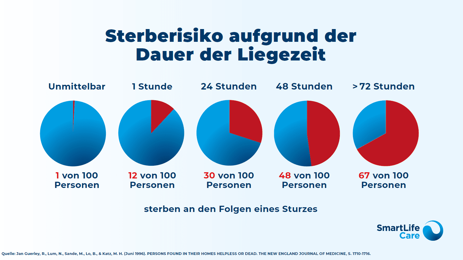 Ein ebenso wichtiger Faktor ist die Verkürzung der Liegezeit, falls es trotzdem zu einem Sturz kommen sollte: Je länger die Liegezeit, desto schwerwiegender die Konsequenzen und höher die Mortalität.