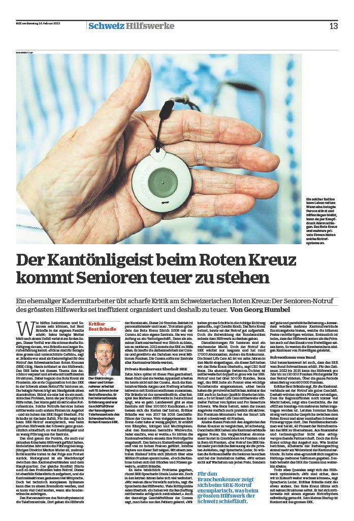 Unser CEO Rolf Bona wurde von Georg Humbel von der NZZ am Sonntag zur aktuellen Situation zum Seniorennotruf beim Schweizerischen Roten Kreuz interviewt.