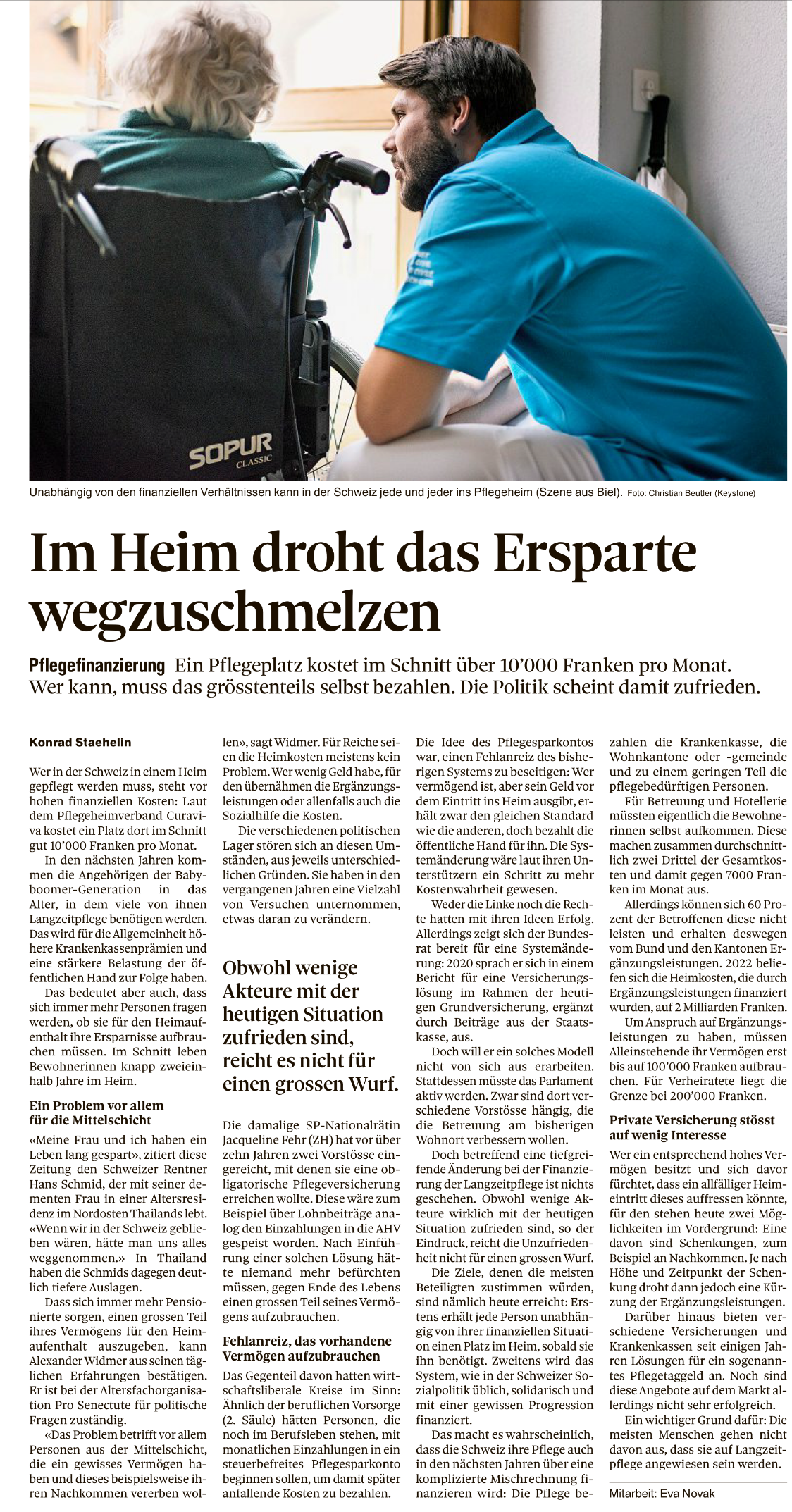 Trotzdem bleibt die Finanzierung der Langzeitpflege in der Schweiz eine komplexe Herausforderung, die verschiedene politische Ansätze erfordert, um eine nachhaltige Lösung zu finden.