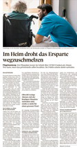Letzte Woche beleuchtete der Artikel des Tagesanzeigers die finanziellen Herausforderungen für Altersheimbewohner in der Schweiz. Besonders bei längeren Pflegeaufenthalten belaufen sich die monatlichen Kosten auf über 10'000 Franken. Dabei bleibt fast 7'000 Franken an den Pflegebedürftigen hängen, was vielen nicht bewusst ist. Viele müssen daher auf ihre Ersparnisse zurückgreifen, um die Pflege zu finanzieren.
